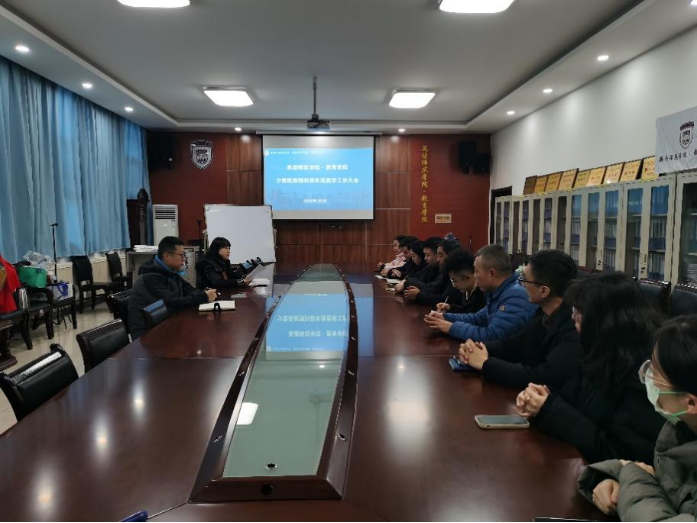1月5日13:00在H107会议室召开了少数民族预科班年度教学工作大会。学院党委书记姚玮,副院长李锐及少数民族预科班全体教师参加会议,会议由李锐主持。