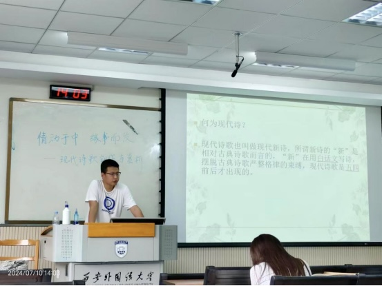 诗歌是中国文化的重要组成部分,它因文化熏陶而深厚博大,是传统文化中最接近人民生活、最能直观反映当时社会的艺术形式之一。在本次现代诗歌创作讲座中,任智峰老师带领学生穿梭于中国现代诗歌的波澜壮阔之中,探寻那些跳跃的文字背后所蕴含的深邃意境和时代脉动。通过回溯中国现代诗歌的发展历程,同学们了解到诗歌如何成为时代变迁的见证者和记录者,从象征主义到后现代主义,从意象派到口语诗,每一种理论都是对诗歌本质的不同诠释。最后,任老师通过对现代诗歌进行赏析与解读,引导大家走进诗人的内心世界,感受他们的喜怒哀乐。通过参加此次讲座,学生不仅领略到诗歌之美,更深入地掌握了剖析诗歌深层含义的钥匙,这一过程丰富了同学们的文学鉴赏视野,使他们的心灵在诗意的浸润下更加丰盈与深邃。