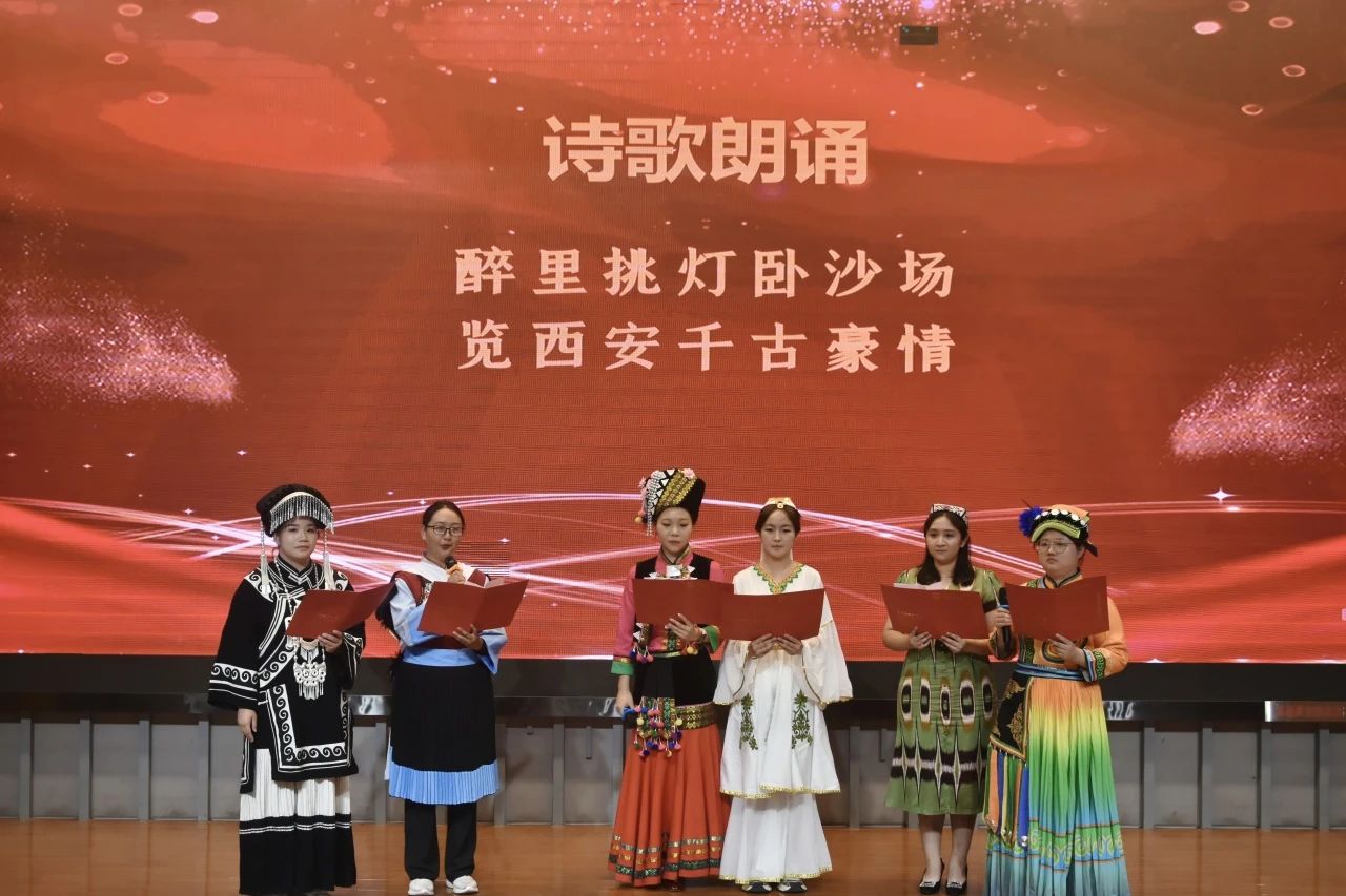 典礼尾声,迎来了一场民族文化的视觉盛宴——2024级预科班新生的风采展示。来自各民族的学生联袂呈现了多元民族文化特色的舞蹈串烧,优雅艺术气息的钢琴伴奏与舞蹈组合,以及激情澎湃的朗诵节目“醉里挑灯卧沙场,览西安千古豪情”,彰显了预科生的活力与才华,助力营造校园文化多样性和团结融洽的氛围。