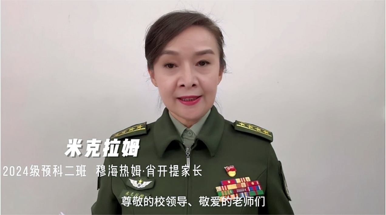 家长代表,穆海热姆·肖开提的母亲,在寄语视频中肯定了学校在引导学生迈向更高平台方面的作用。接着,她高度评价了西安外国语大学对学生国际视野和多元文化素养的培养,认为这是为孩子们走向世界舞台奠定坚实基础的关键所在。最后,她鼓励学生们在预科阶段勇于面对挑战,不畏困难,家人、学校将一直是他们坚强的后盾,支持他们追求梦想。