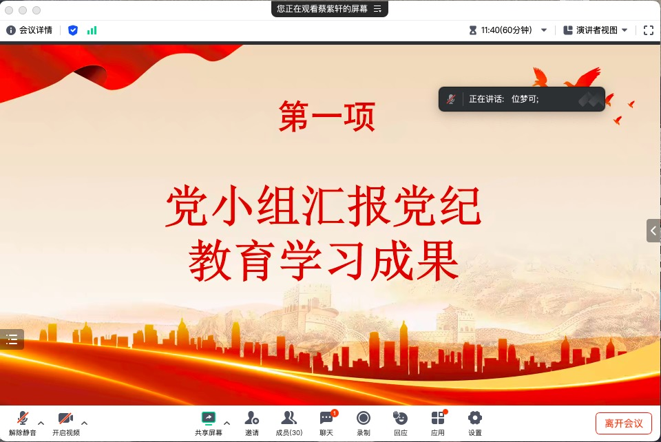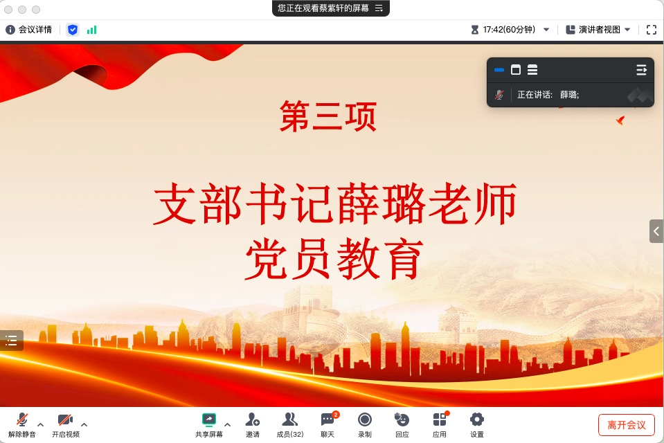 会议第四项,与会党员共同观看高校党组织示范微党课视频,了解了高校在助力航天强国建设中的生动实践。